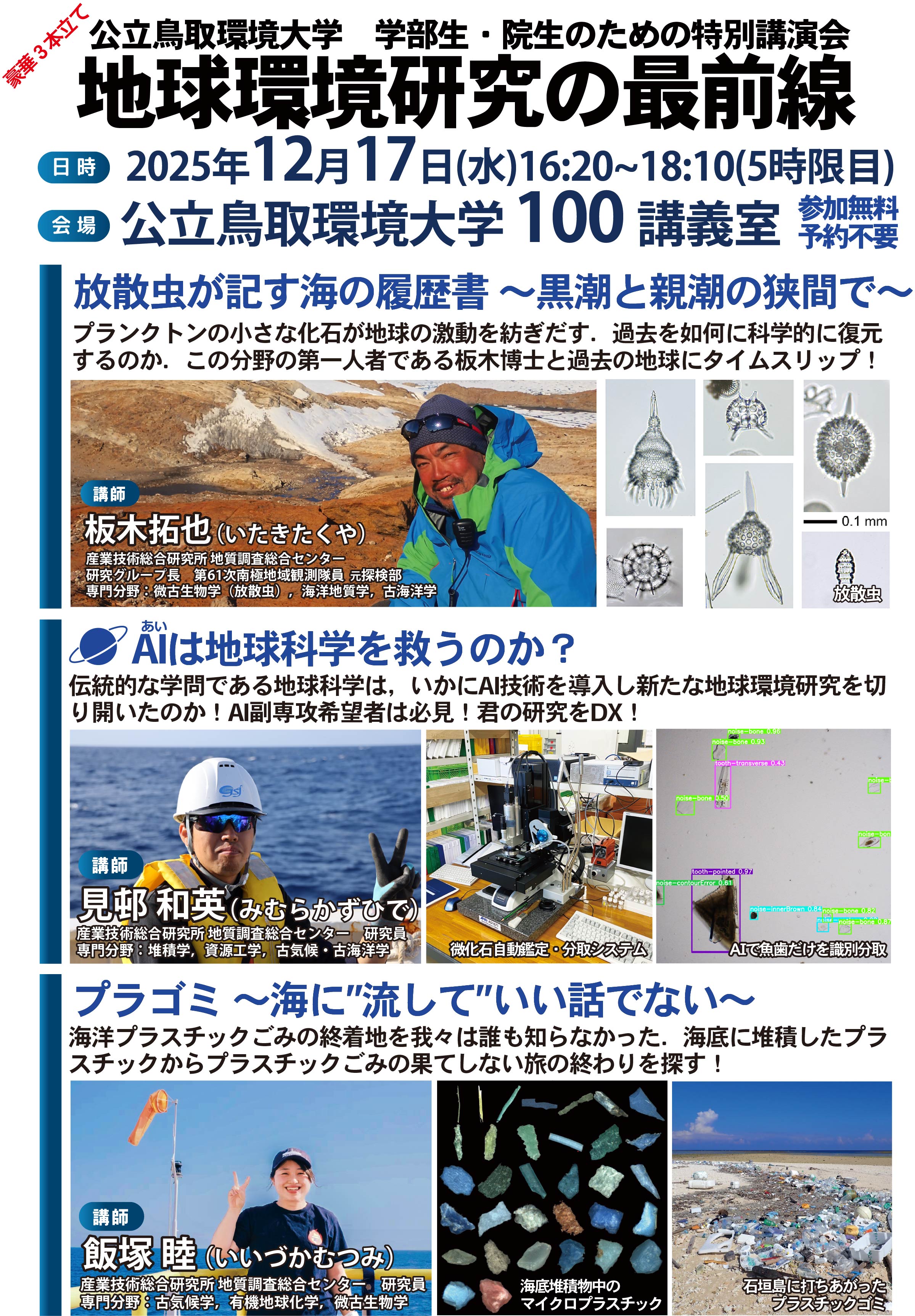 - 講演名 公立鳥取環境大学 学部生・院生のための特別講演会 「地球環境研究の最前線」