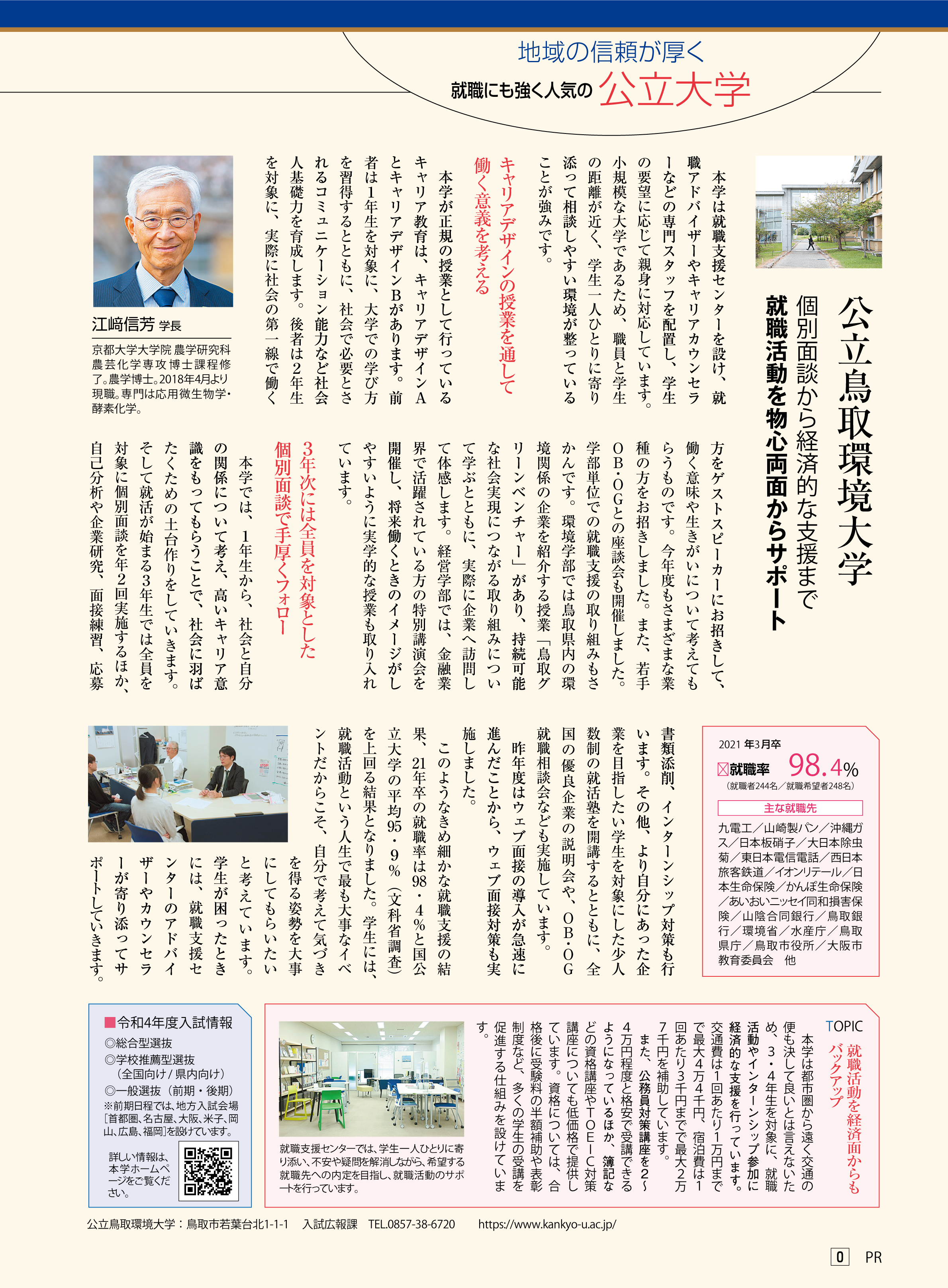 AERA MOOK「就職力で選ぶ大学2022」に公立鳥取環境大学が掲載