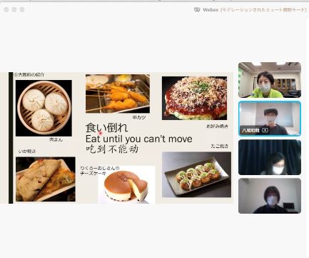 この度、オンライン交流会では「大学及び大学生活」、「自国の文化」、「自分の出身地」という3つのテーマで交流を深めました。