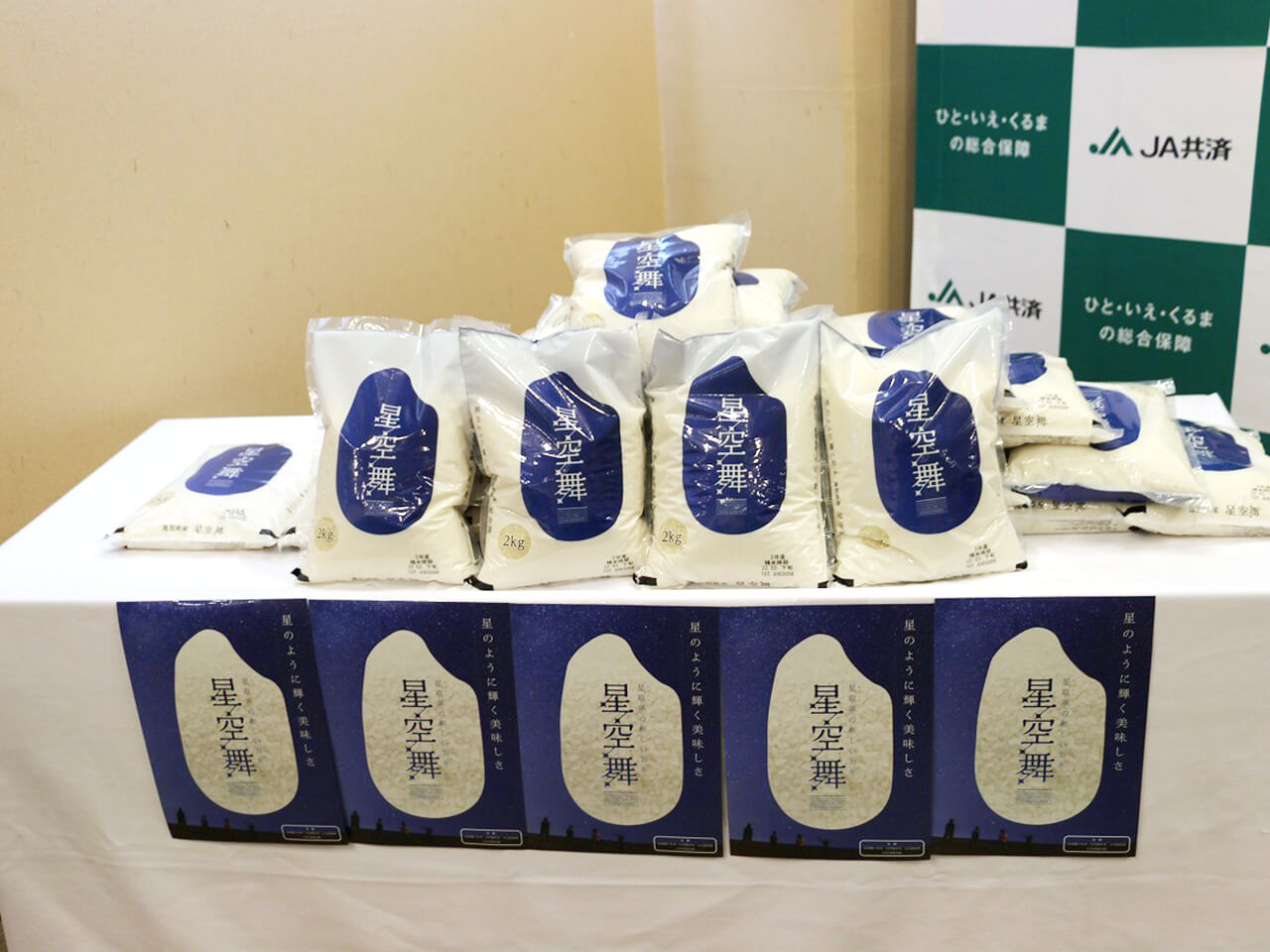 令和4年4月12日(火)、鳥取県内の3JA(JA鳥取いなば、JA鳥取中央、JA鳥取西部)とJA共済連鳥取より、コロナ禍の中で生活する本学学生を支援することを目的に、鳥取県産米「星空舞」400kg(2kg×200袋)を寄贈いただきました。「星空舞」は鳥取県産のブランド米で、寄贈者のJA共済連鳥取の山西裕祐副本部長は、「星のように輝く県産のお米を食べて健やかに過ごしてほしい」と本学学生に支援の言葉を語りました。 寄贈式では、学友会副会長の佐藤わかばさん(環境学部3年生)が、学生を代表してこのたびの寄贈への御礼を述べました。